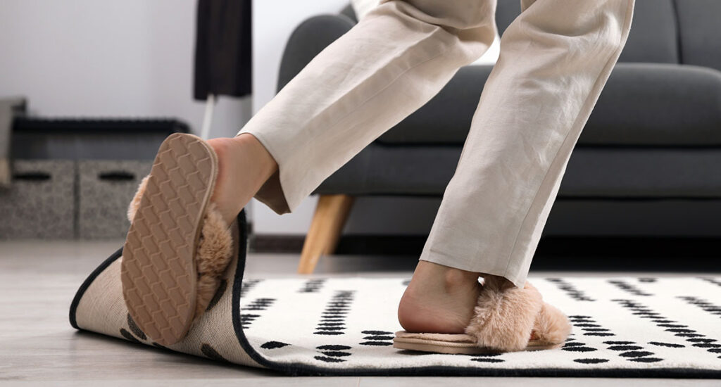 - Tapetes – Seja em que divisão for, os tapetes devem ser antiderrapantes e estarem bem presos ao chão, para evitar que os pés se engatem neles.
